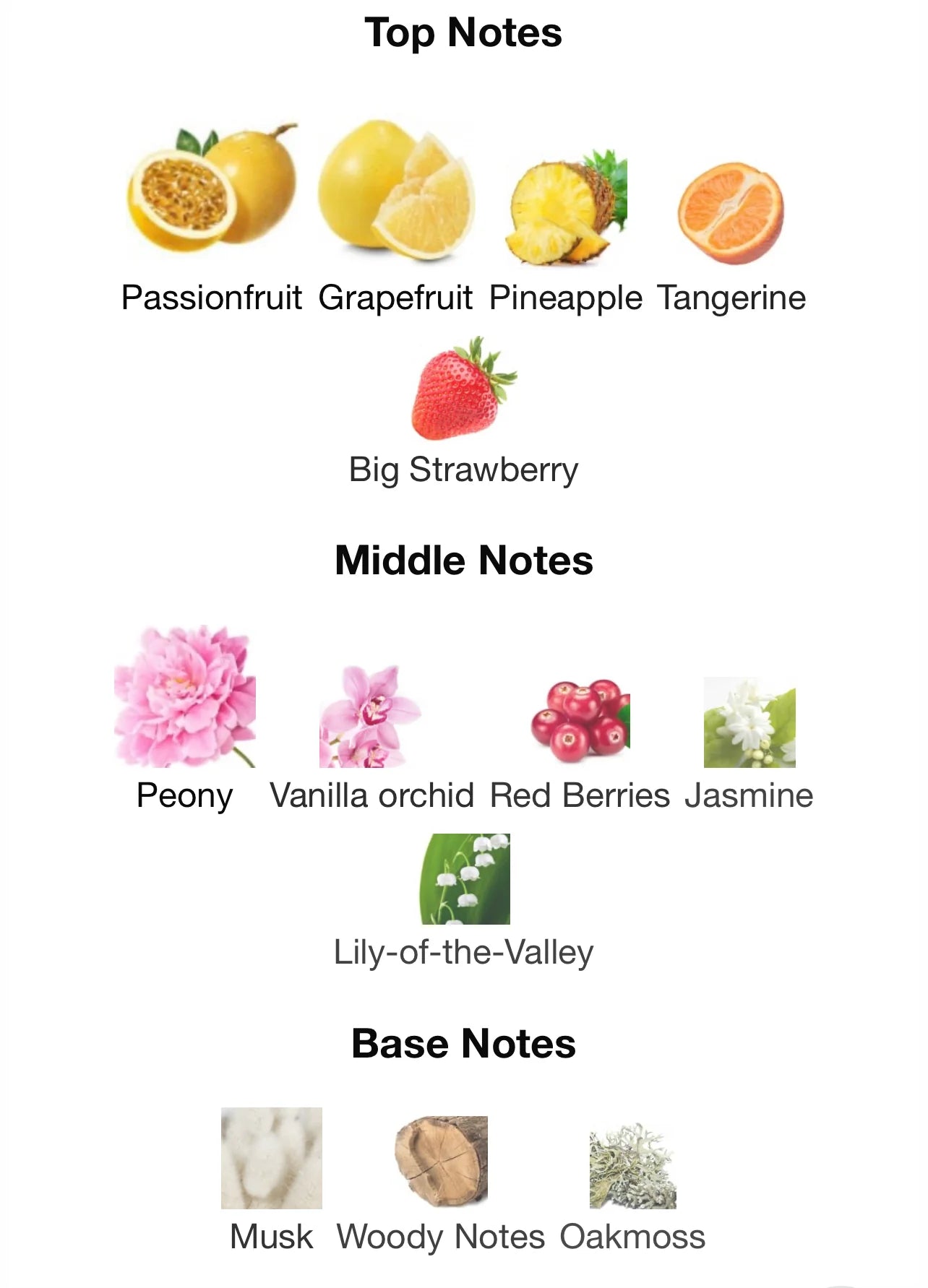 Top Notes: Passionfruit, Grapefruit, Pineapple, Strawberry