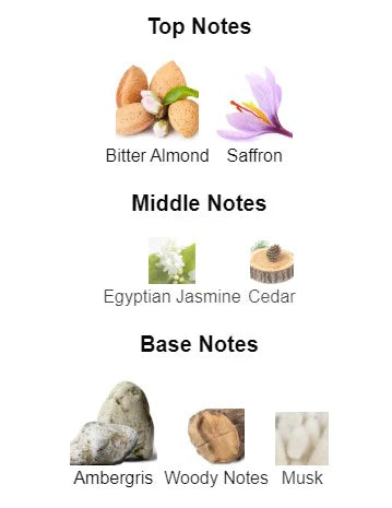 The opening is a radiant flame — saffron and jasmine flicker together like golden silk spun in heat and desire. It's bold and delicate, airy yet intimate, like whispered secrets in a room filled with candlelight and crystal.